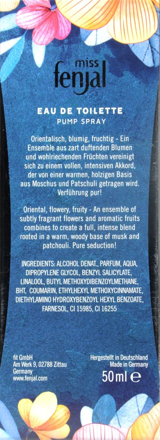 Miss Fenjal EDT Belle de Jour ist ein Duft und Körperpflegeprodukt. Das Parfum überzeugt mit einer orientalischen Geruchsnote aus duftenden Blumen und wohlduftenden Früchten. Der Geruch wird durch eine Basisnote aus Moschus und Patschuli komplettiert.